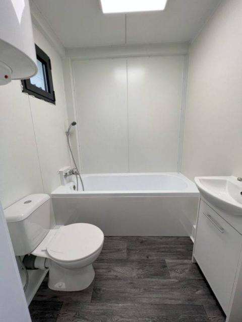 Oficina contenedor de 5 x 2,20 metros, 2,62 metros de altura, con inodoro.