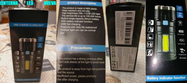 LINTERNA LED NUEVA CON CAJA, CON CARGADOR , RECARGABLE , TOMA USB CON TAPA PARA QUE NO ENTRE SUCIEDAD . TIENE 3 MODOS DE LUZ : 1 ) LUCES FIJAS . 2 ) LUCES INTERMITENTES . 3 ) LUZ LATERAL AMARILLA . NO HAGO ENVÍOS . NO BIZUM . SE RECOGE EN EL METRO DE SAN LORENZO DE LA LÍNEA 4 MARRÓN DEL METRO DE MADRID