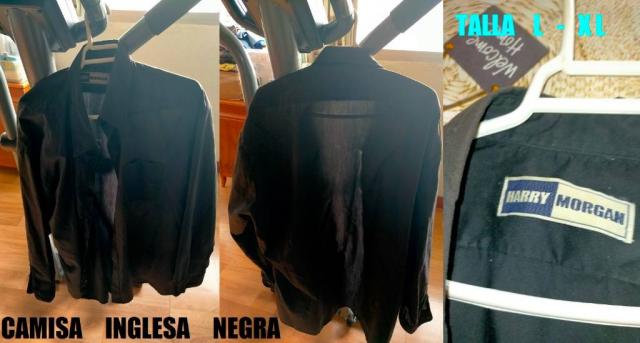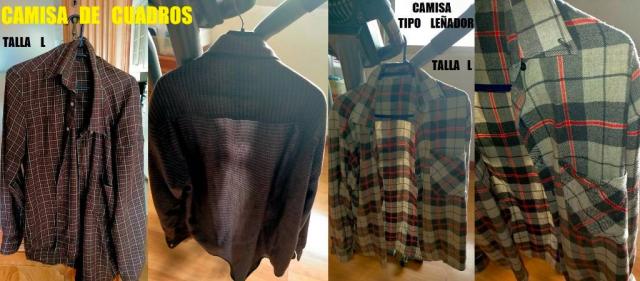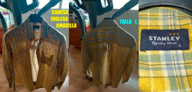 CAMISA DE CUADROS CON UN BOLSILLO , TALLA L . CAMISA DE VESTIR TALLA L . CAMISA INGLESA AMARILLA DE LONDRES, TALLA L . CAMISA INGLESA NEGRA DE LONDRES, TALLA L - XL . CAMISA TIPO LEÑADOR CON UN BOLSILLO DE LA TALLA L .
